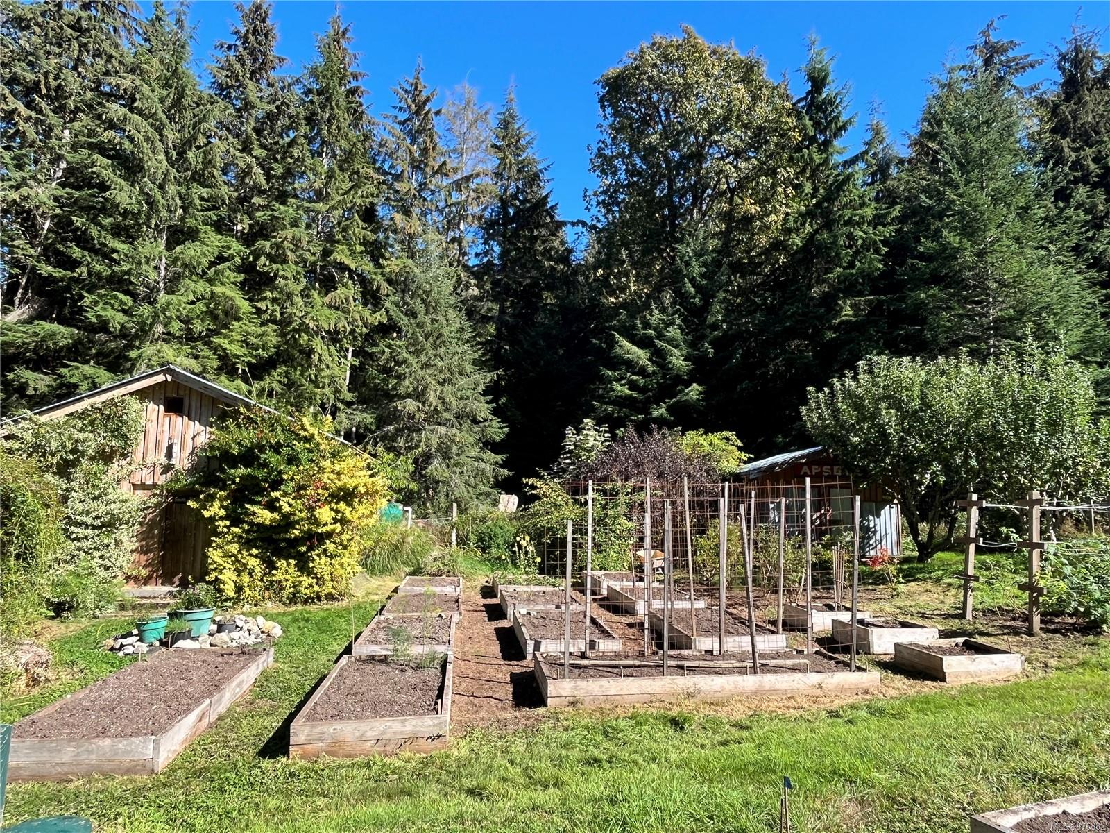 Remarkable 11.35-acre property, nestled in lush forested neighborhood. This South facing lot features a sprawling veggie and perennial garden, an established orchard, two greenhouses, and plenty of water, ensuring you’ll enjoy a bounty of fresh produce year-round. The decommissioned manufactured home has been extensively renovated and expanded, providing a cozy and functional space- Cedar siding, EPDM roofing, sunny deck overlooking the garden, as well as a greenhouse connected to the primary bedroom. Also offered are a spacious workshop, garden shed, wood shed, outdoor movie screen, and water catchment. This property provides endless possibilities for homesteading, gardening, and simply enjoying the beauty of nature while living sustainably in a forested haven.
