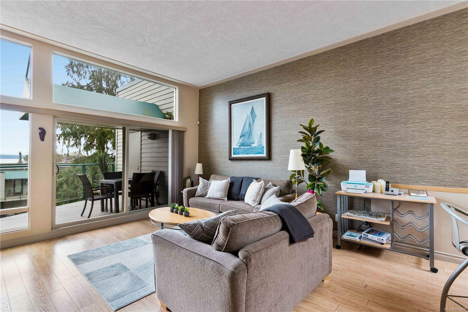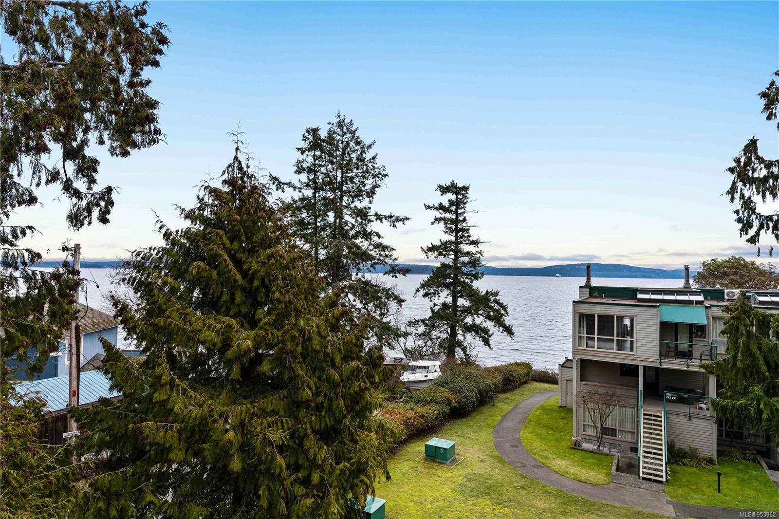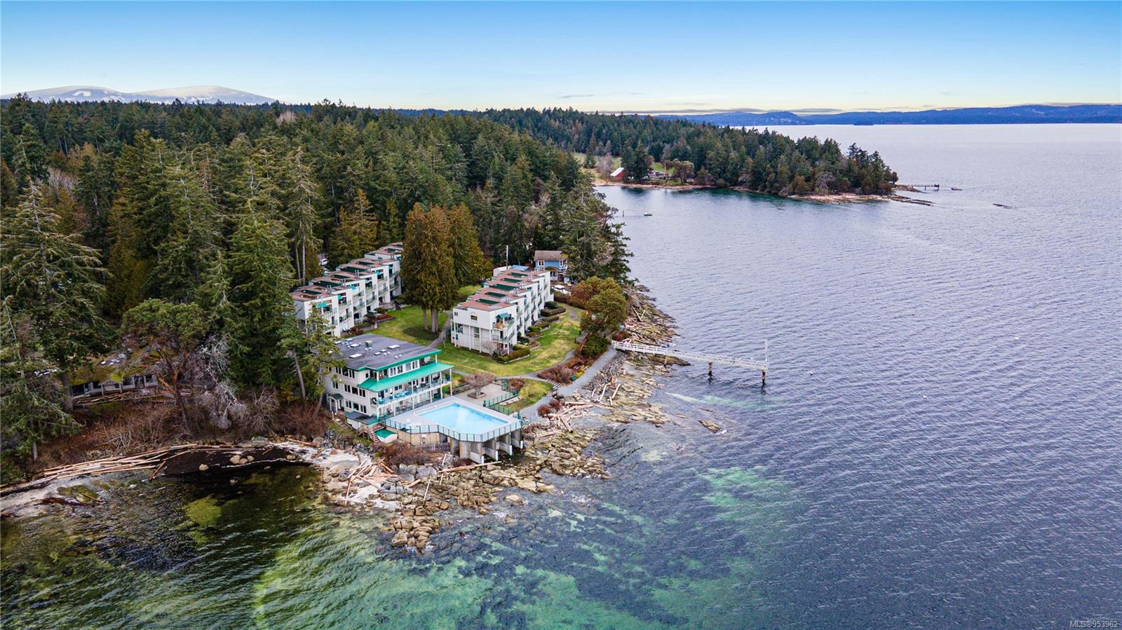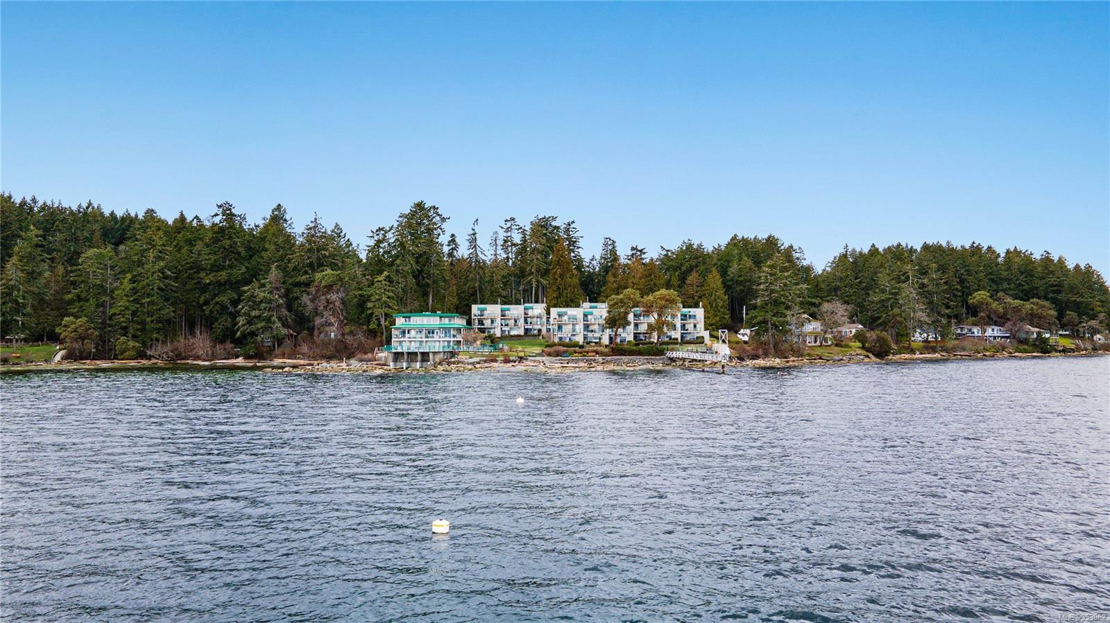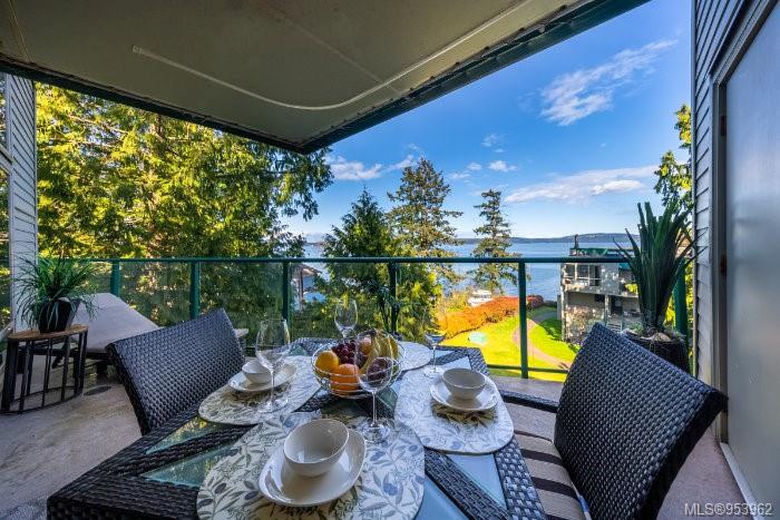 OCEANFRONT. Commercial zoning allows short term rental w/out restrictions. Vacation rental & holiday home with built-in revenue with AirBnB or Vrbo. Comes with its own website. All appliances, TVs, furniture, beddings, patio furniture, kayaks, & artwork are included in the sale. End unit offers 2 bed, 2 full bath suite with open floor plan & high ceilings with stunning views of the ocean, Gulf Islands & access to multiple private deck spaces. Located 20 mins south of Nanaimo, close to ferry terminals and airport. Features in floor electric (bathroom, kitchen, main living) & Air Conditioning. A staircase separates the main living space from a lock-off additional accommodation with a private ocean view deck. Strata fees include: wireless internet, water, cable, outdoor pool, hot tub, tennis court, playground, 3 BBQ areas, and large dock for seasonal boat moorage.(All information, data & measurements should be verified if fundamental to the purchase)